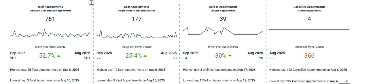 We’ve replaced the older appointment status line chart with a stacked bar format for better readability and quicker pattern recognition.