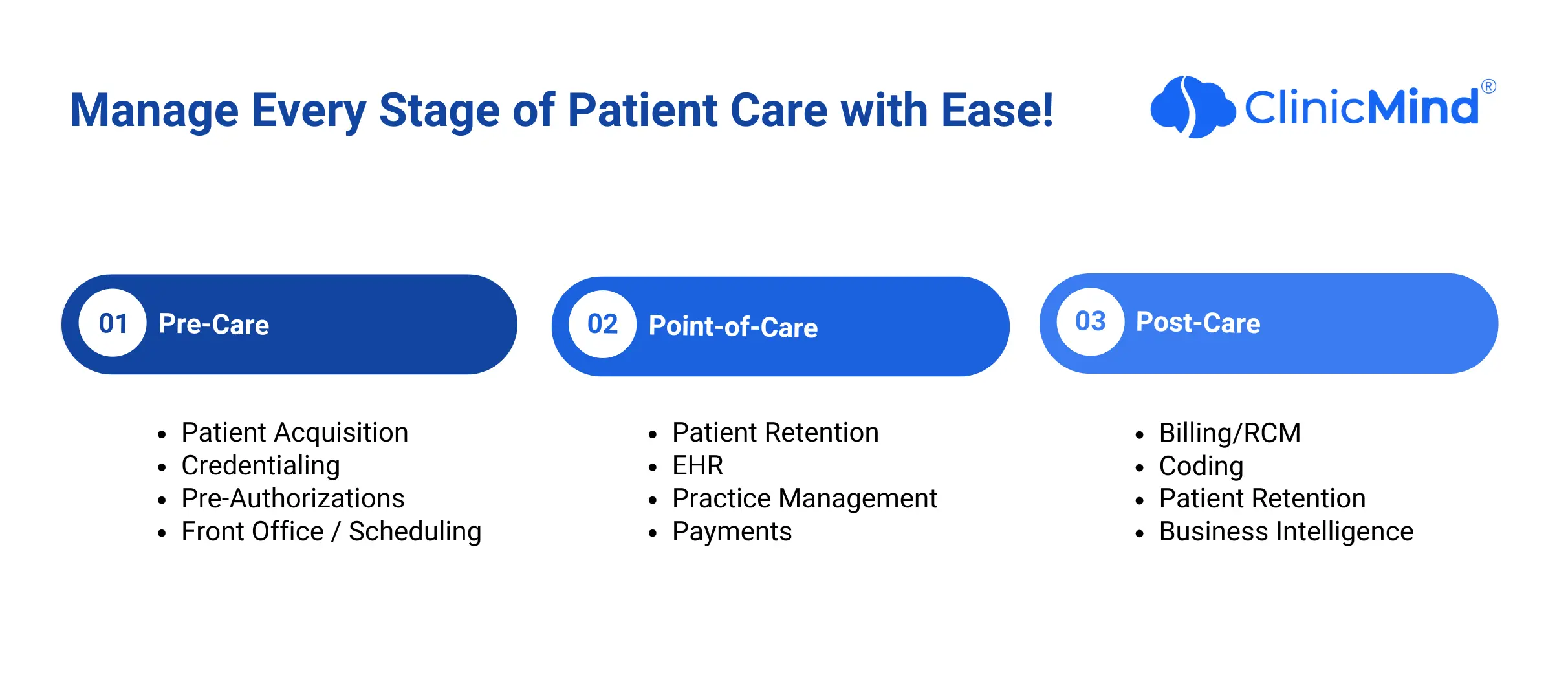 Designed for Health Care Clinics to simplify their practice management and grow. ClinicMind helps you: