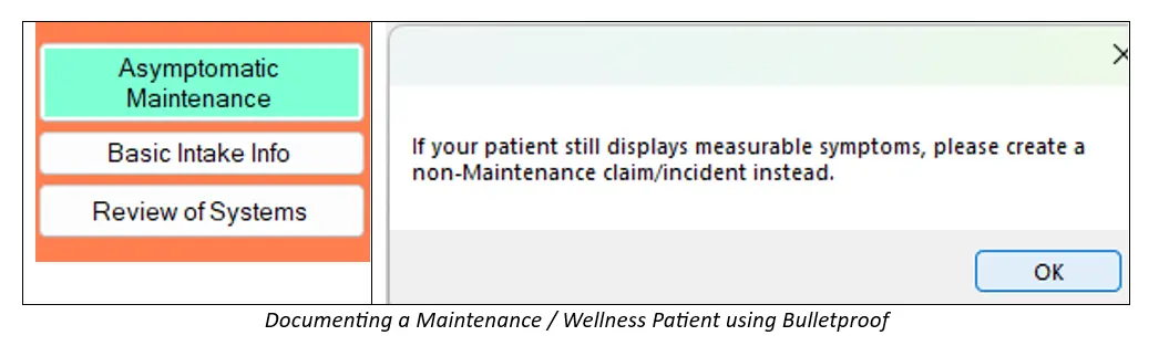1. For Subjective Complaints, you can simply document “Patient X is here today with no symptoms, for the purpose of a maintenance adjustment.”