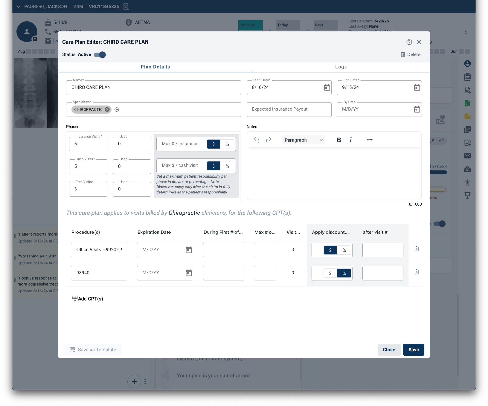Discounts at CPT / Group Level – Apply distinct discounts to specific CPT codes or groups instead of one discount for the entire care plan.