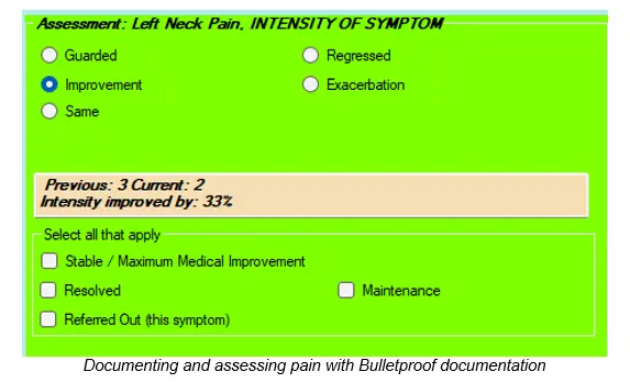 What does Medicare want from us with regard to documenting PAIN? They simply want us to document a pain assessment using a standardized tool(s) on each visit AND documentation of a follow-up plan when pain is present. There are a number of standardized tools that Medicare gives as examples, but the easiest and fastest is the Verbal Numeric Rating Scale. This is the familiar 0-10 scale, with 10 being the worst pain imaginable. Add to that the % of time the patient notices that condition, and you’ve got Pain Assessment locked up.